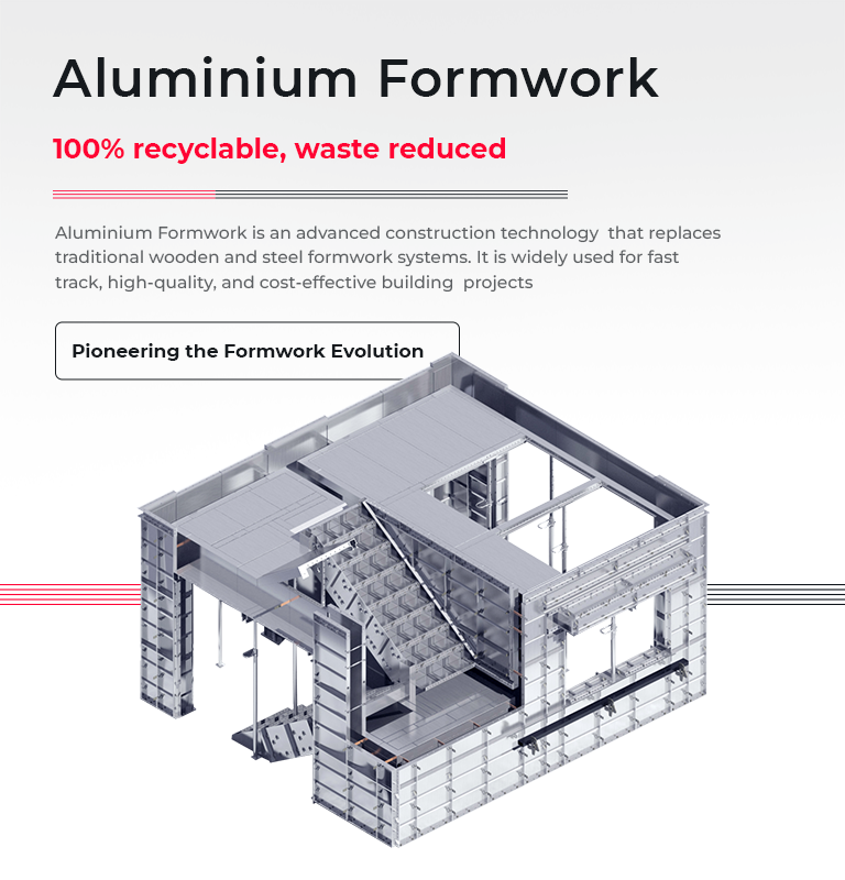 We are committed to empowering builders, developers, and infrastructure companies with lightweight, durable, and reusable aluminium formwork solutions that accelerate project timelines, enhance finishing quality, and maximize efficiency on-site.